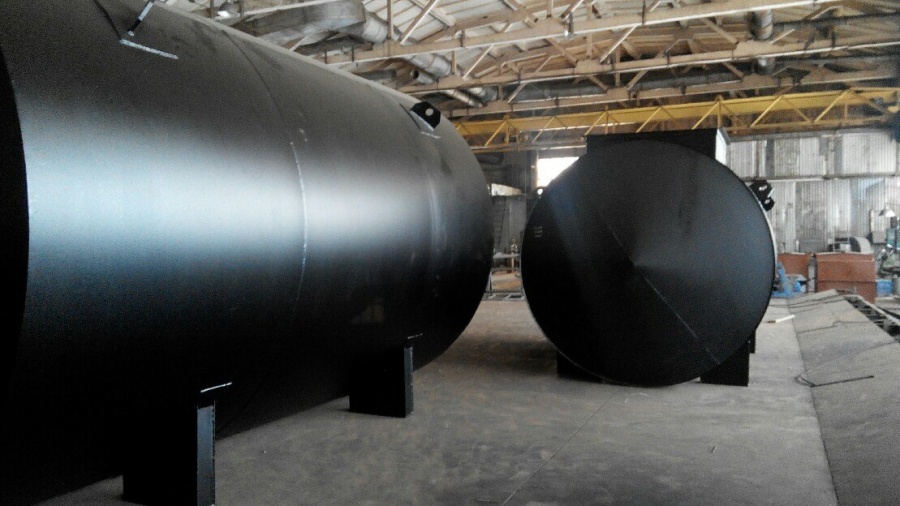 Металлическая емкость может иметь одинарный или двойной корпус, круглое или прямоугольное сечение. Конфигурация днища в горизонтальных сосудах зависит от предполагаемого избыточного давления продукта: при 0,4 МН/м2 – плоская, при 0,7 МН/м2 – конусообразная.
