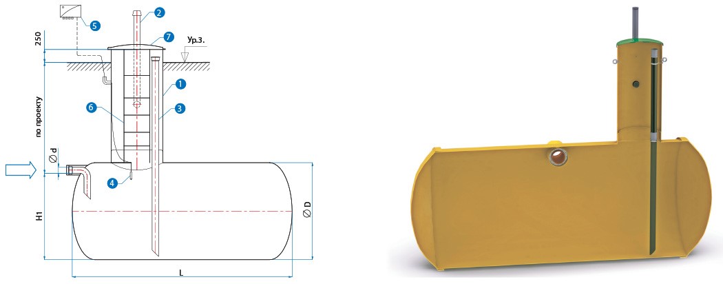 Для резервуаров поверхностных, хозяйственно-бытовых и других сточных вод, возможно исполнение с насосной установкой для дальнейшей перекачки стоков.