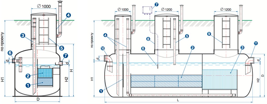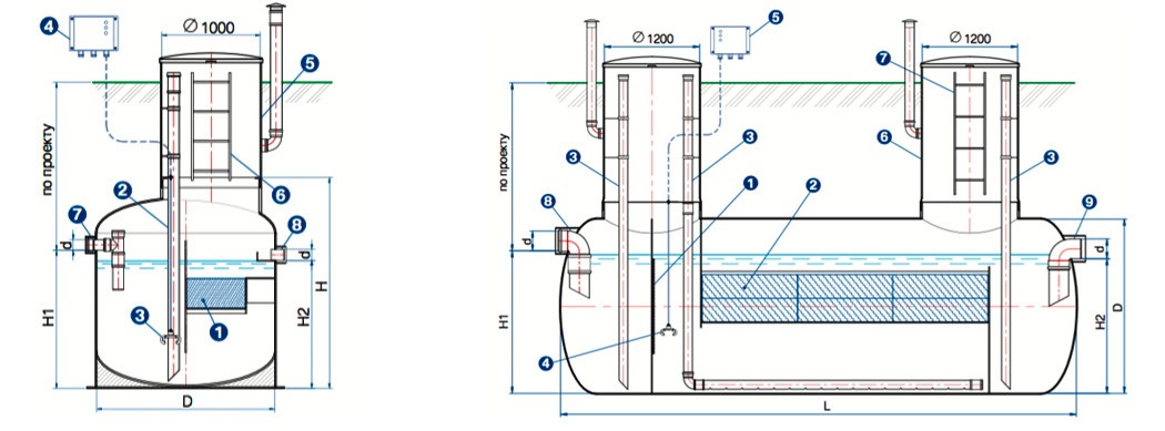 Нефтеуловитель «НУ» (1-9 л/с) | Нефтеуловитель «НУ» (10-100 л/с) |