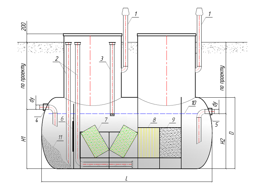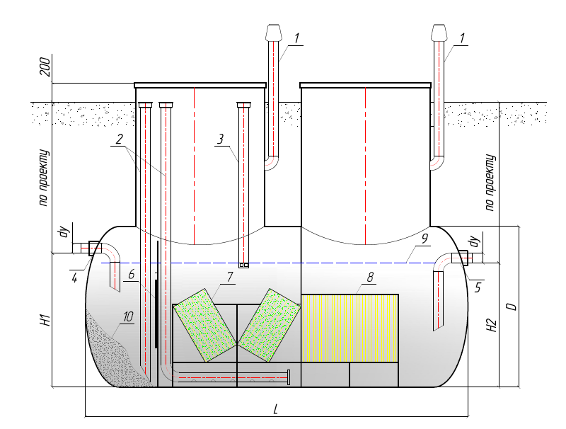 Нефтеуловитель служит для выделения взвешенных веществ и нефтепродуктов из состава сточных вод.